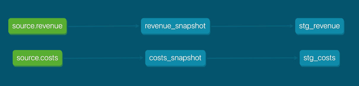 Remember the source data change Joanne noticed — a manufacturing cost was dated incorrectly (Junkuary 2022 instead of January 2022). With this solution, the costs_snapshot model will pick up this change: